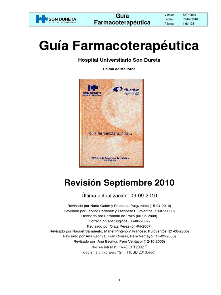 Guia Farmacoterapeutica Hospital Universitario Son Dureta 2010 Pdf Medicamentos Con Receta Farmacia